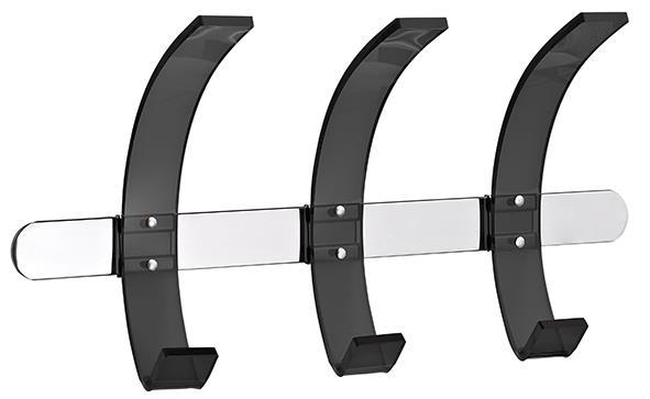 – kromirana plošča s 3 prosojnimi akrilnimi obešalniki – material za pritrditev na steno priložen – širina cca. 37 cm, višina cca. 20 cm – stilsko usklajen s stojalom za plašče model 2872