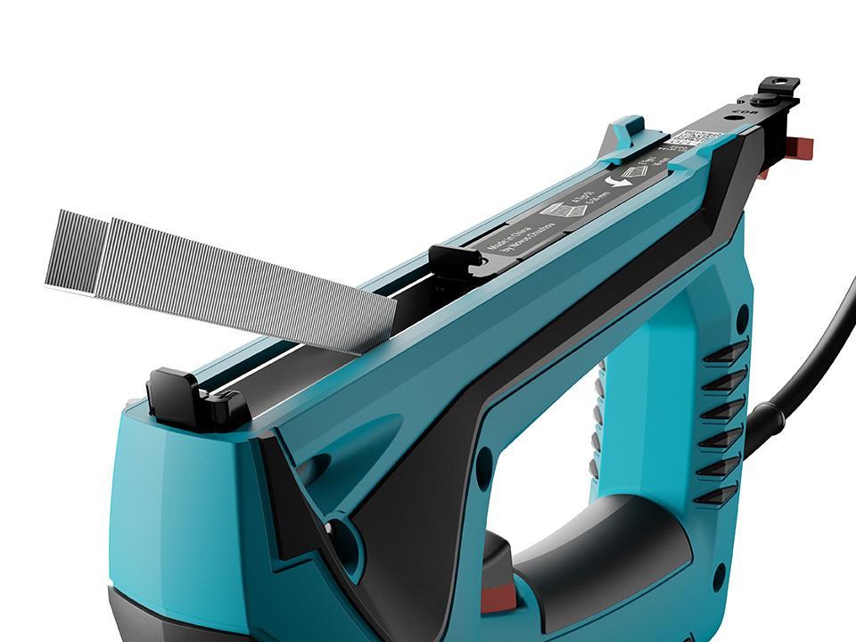 – majhen, zmogljiv električni tapetniški spenjač za pritrjevanje tkanin in tekstila, optimalen za notranjo opremljanje in uporabo v delavnici