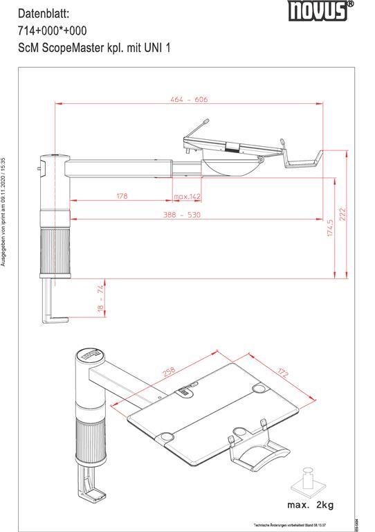 – doseg stojala v širino 464-606 mm, v višino 175mm
